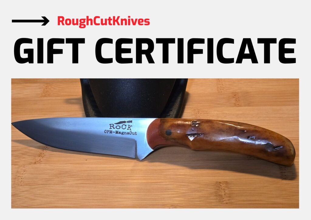 Step 1) You contact RoughCut Knives, LLC, to discuss purchasing a Gift Certificate for yourself, your friend, or loved one. After a brief discussion we will send you a detailed invoice for your review. Feel free to communicate any changes needed.