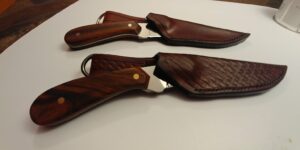 Turkey – a 3 inch “Bird -n- Trout” knife. Small, light and nimble blade, designed for your small hunting chores. AEB-L Stainless Steel blade paired with Stabilized Wood handles. Or customize to your liking! (sold individually, not in pairs as shown)