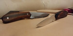 Starting Price $95.00 – 1/8th” thick, 3″ long AEB-L Stainless Steel blade with G10 or Stabilized Wood handles (choice of Walnut, Cherry, Hackberry, Maple or Birch.
